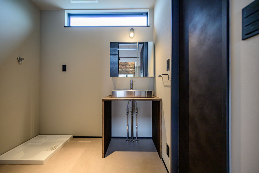 得意の造作洗面は、下部をオープンにすることでワゴンなどを置いてフレキシブルにお使いいただけます。