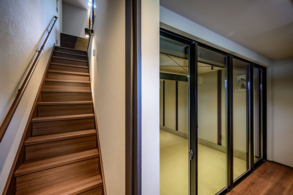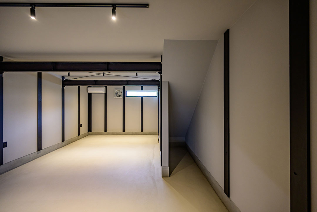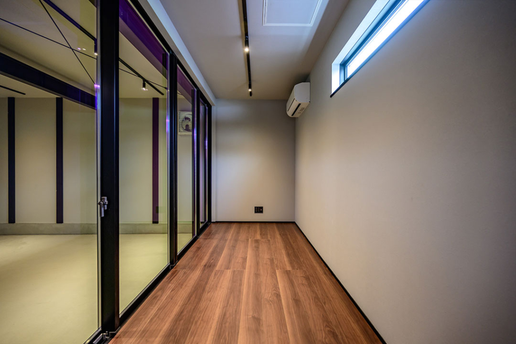 住戸00は特別仕様で、ガレージをサッシで仕切り、個室空間を設けました。