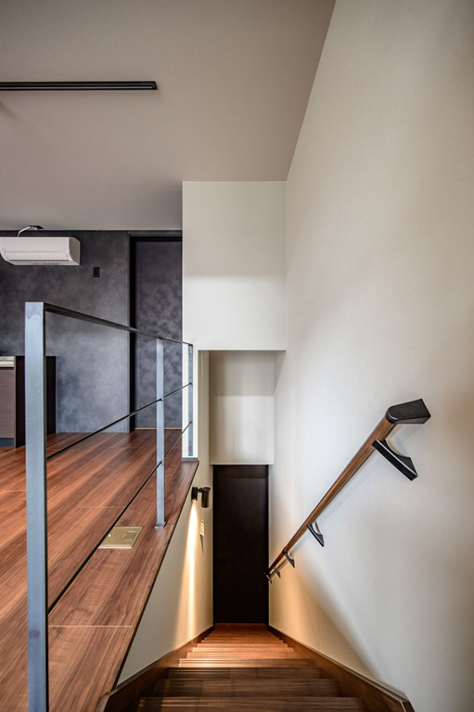 生地、チェーン、階段照明がLDKから見えないよう工夫しました。