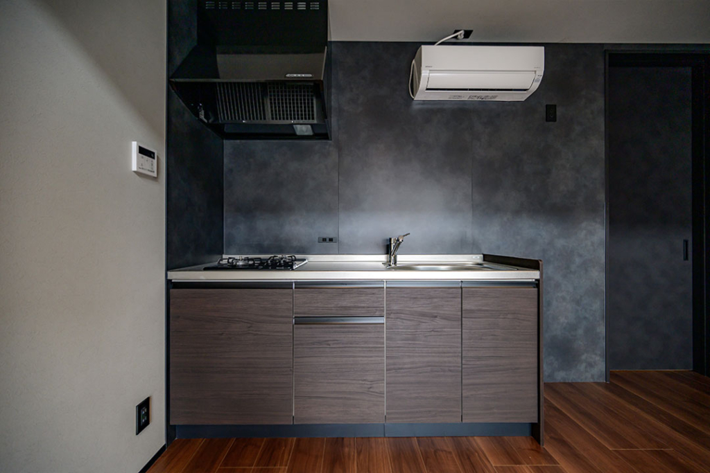W1800のキッチンは単身世帯なら十分な広さ。料理も捗りますね。