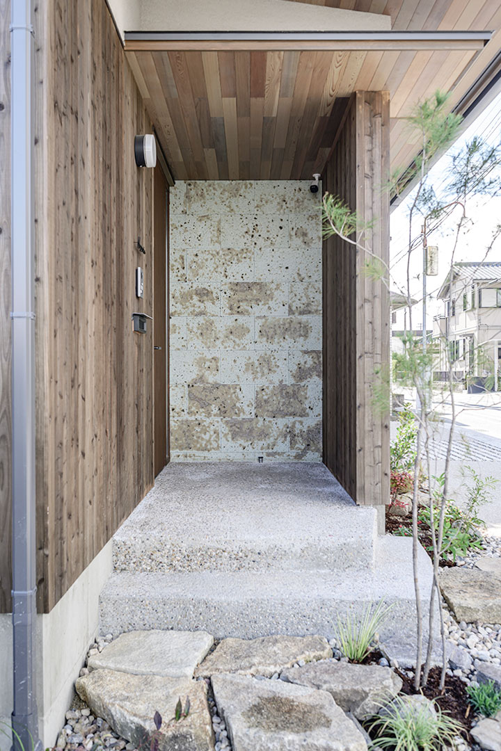 玄関ポーチは、まるで昔からそこにあったかのような『経年変化』を感じさせるデザインにこだわりました。
