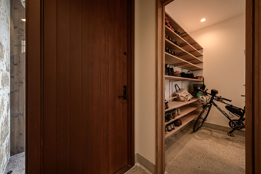 広いシューズクロークは自転車を止めてもまだまだ余裕のある広さ。