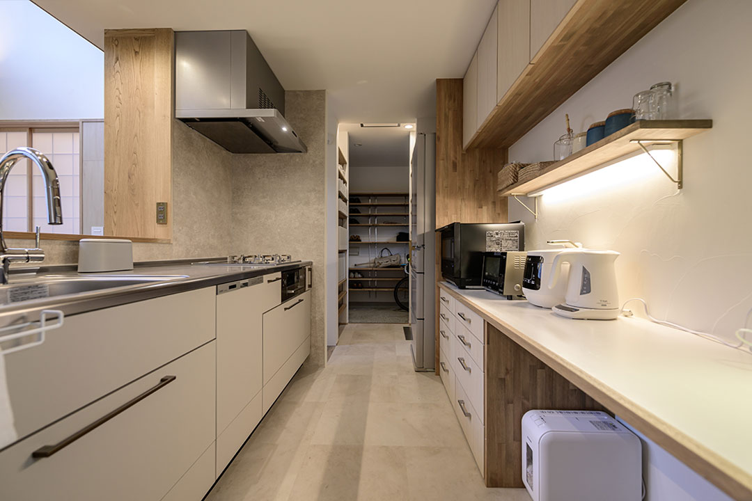 シューズクロークからはパントリーにもつながっており、買い物帰りの利便性も高まります。