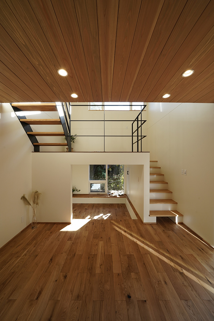 ダウンフロアとスキップフロアの組み合わせで立体的な空間に。