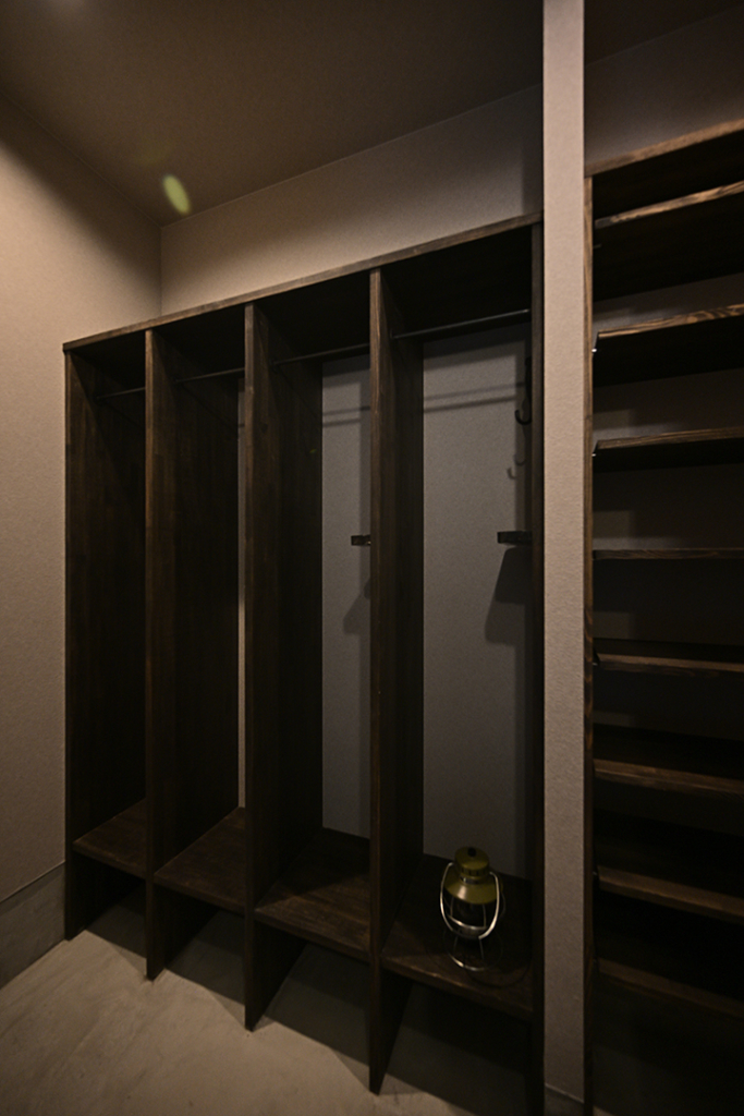 シューズクロークの半分は家族用のロッカーになっていてます。