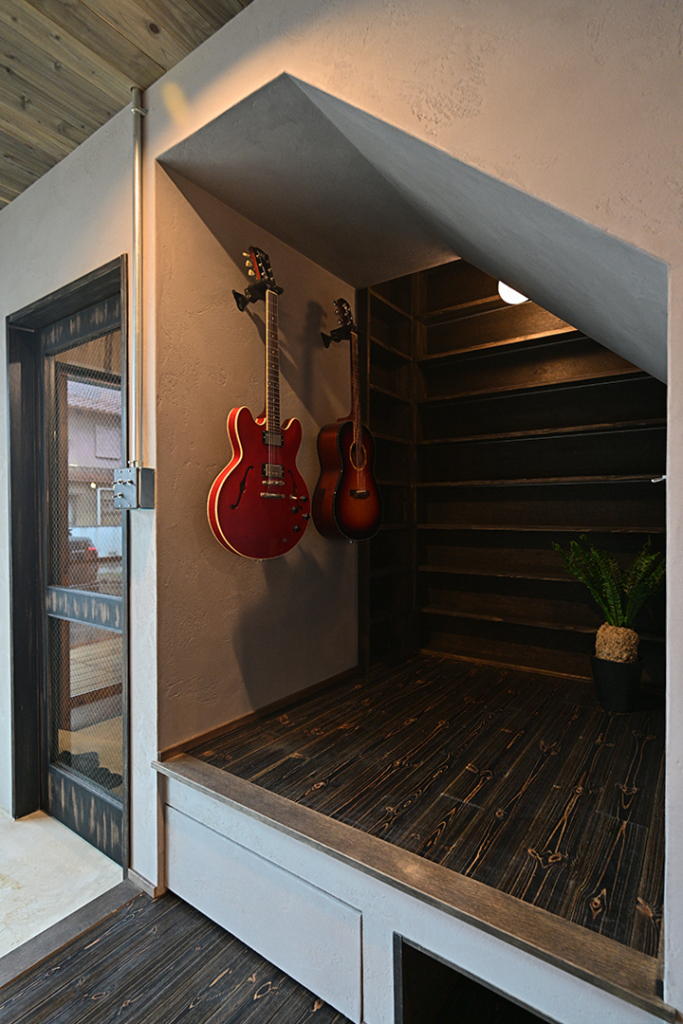 ゲームやギターなど、ご主人の趣味を満喫するスペースです。