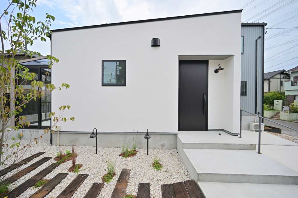 玄関廻りの外壁はヨーロッパの漆喰壁。