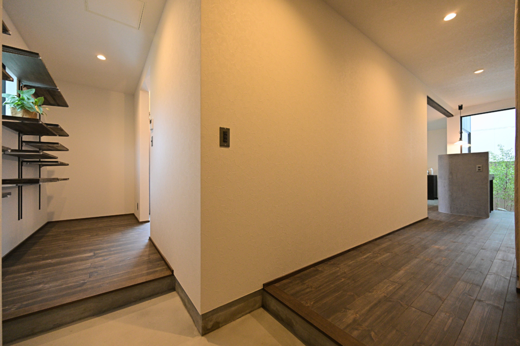玄関からパントリーとホールに2手に分かれています。