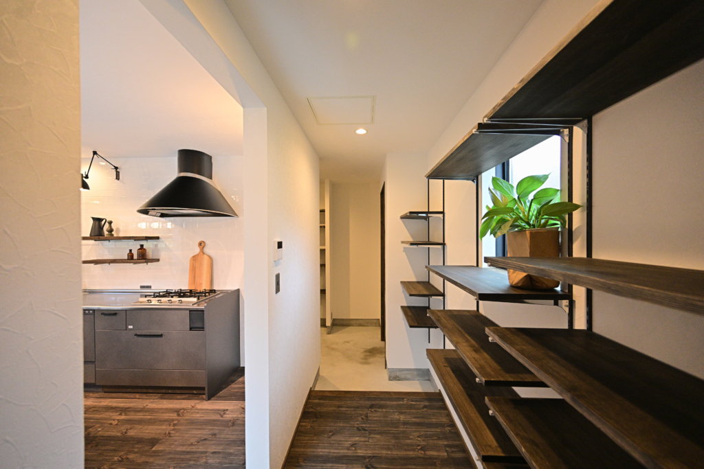 玄関→パントリー→キッチンのアクセスはとても便利です。