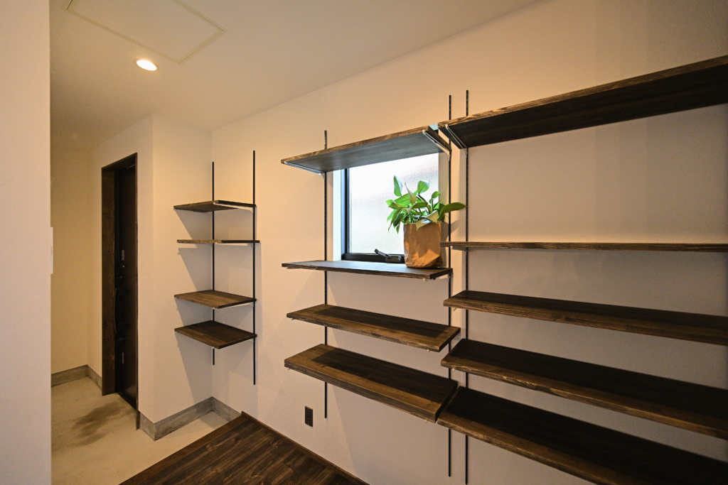 パントリーは可動棚になっているので収納するものに合わせて高さを調節できます。