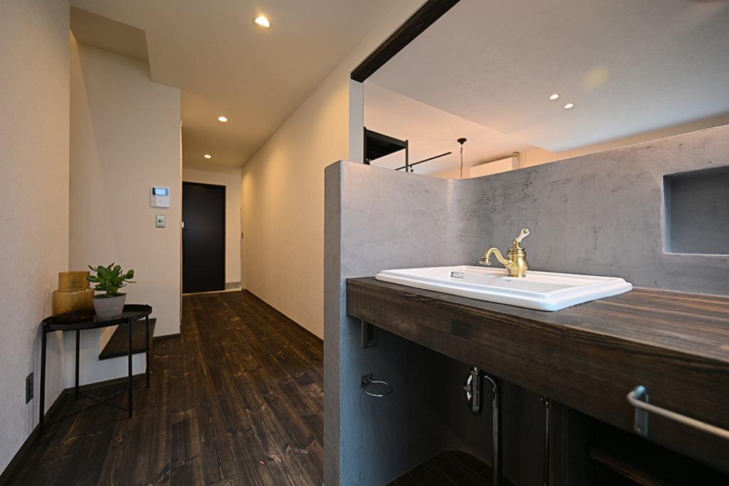 リビングとホールの間に洗面台を設置しました。