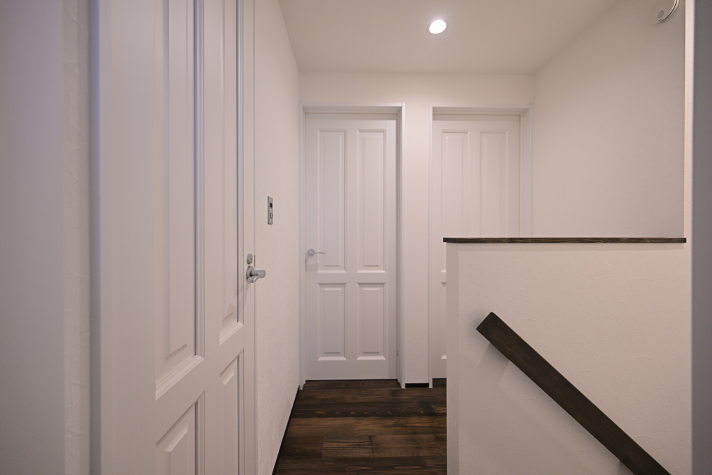 2Fの各居室は1Fのテイストに合わせたデザインのドアにしました。
