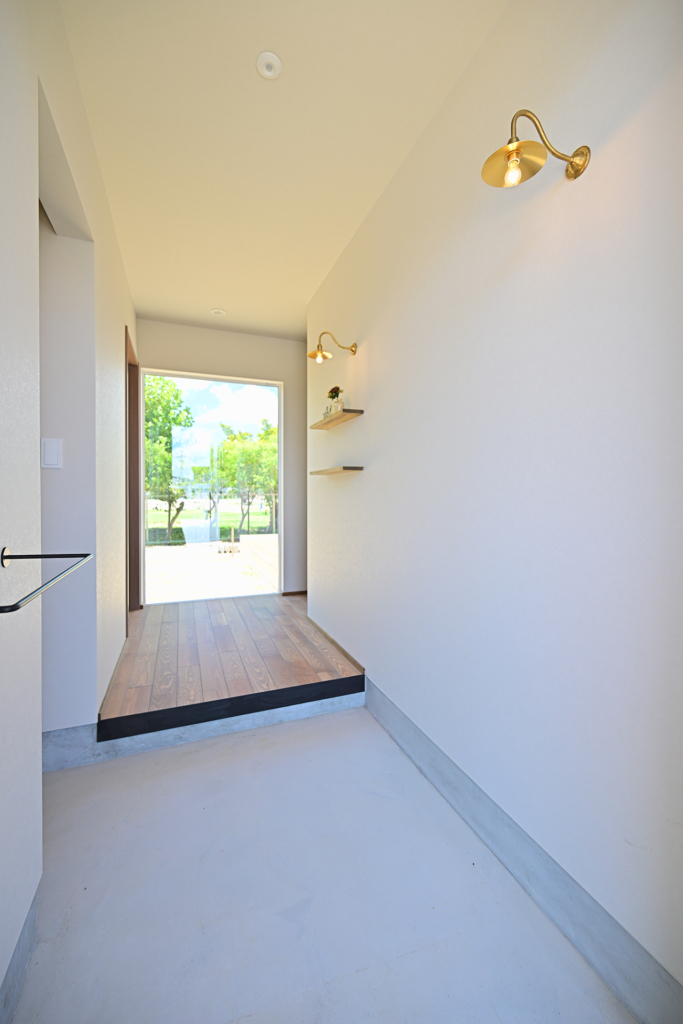 玄関入って正面に見える大きな窓は、明るさと抜け感を出すことができます。