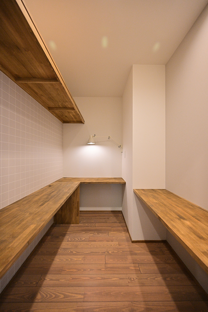 キッチン横には2面のパントリーを設けました。