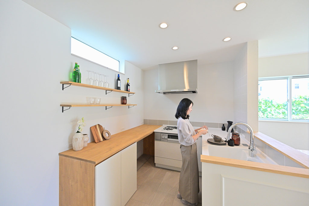 ホロスホームオリジナルのバックカウンターはキッチンの高さと合わせて使いやすいようにデザインされています。
