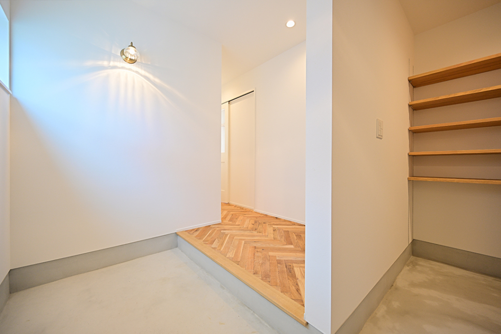 キッチンと行き来できるドアをつける事によって、家事がより楽になる動線が出来ました。