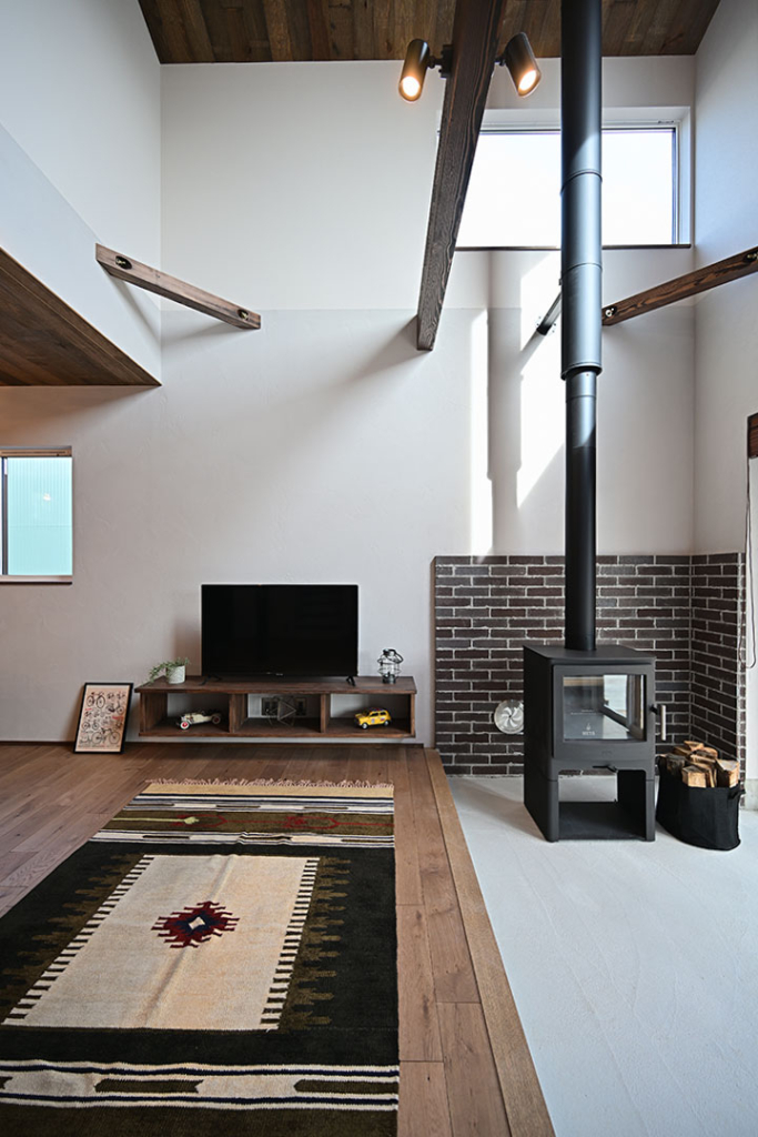 土間スペースには薪ストーブを設置しています。