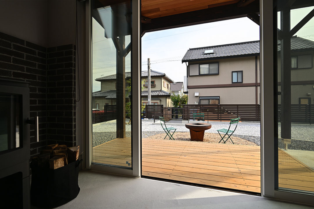 ウッドデッキ~土間~LDKの連動空間、さらに庭との連動で愉しみ方が無限に広がります。