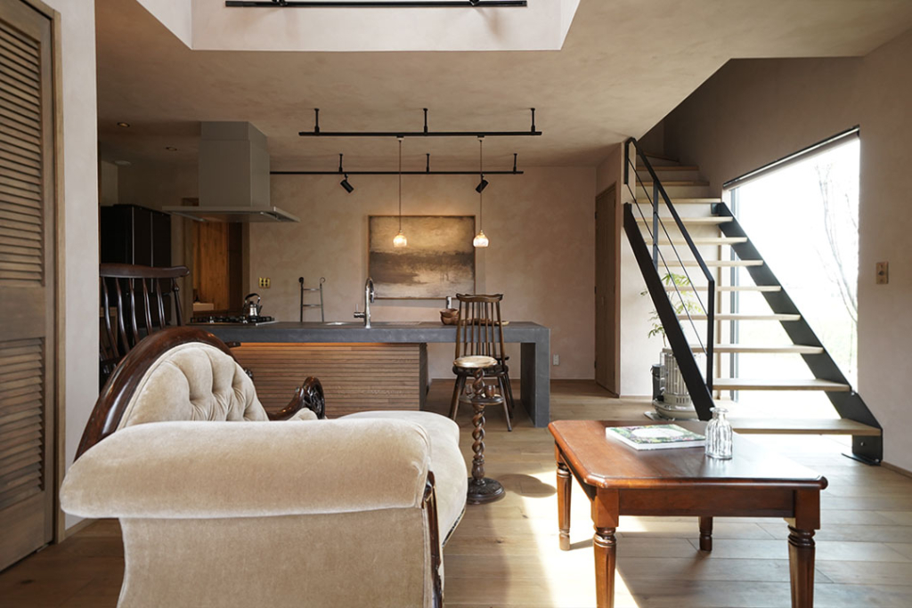 お部屋の淡い色味が、アンティーク家具をより引き立ててくれています。
