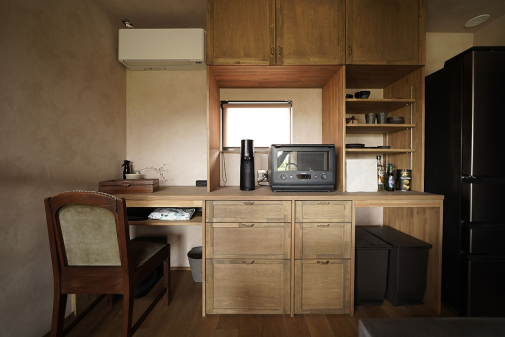 造作なので高さや幅もぴったり合わせることができ、すっきりして見えます。