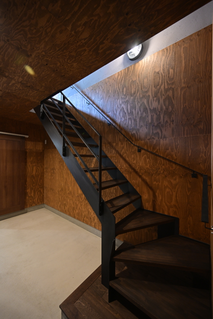 鍛冶屋さんに作ってもらった、オリジナルの鉄骨階段です。