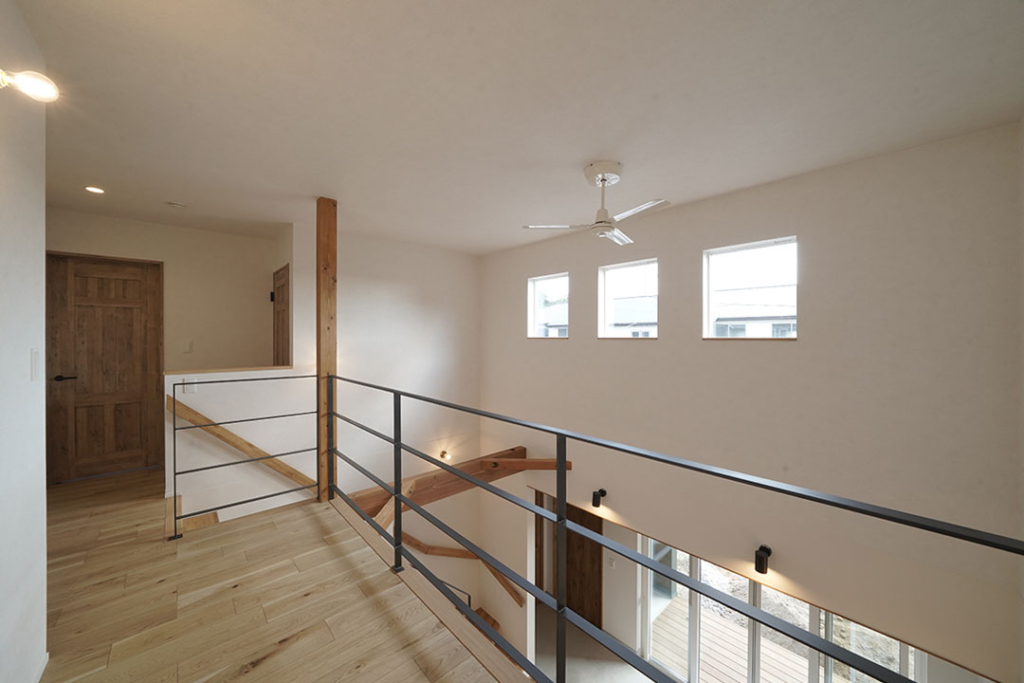 2階との一体感も生まれ、吹き抜けに窓を取り付けることにより明るさもプラス。