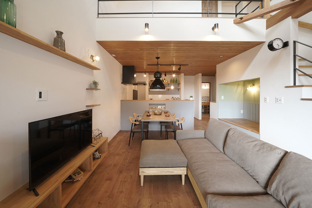 リビングの上は吹き抜けになっており、開放感があります。