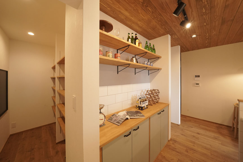 奥のパントリーは2.1帖あり、食品や日用品のストックにもしっかり対応できます。