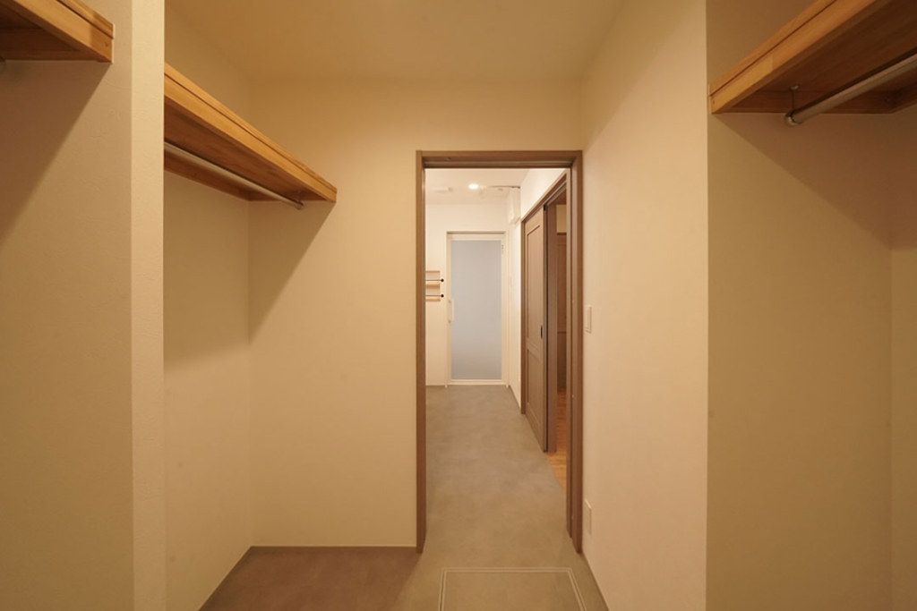 洗面脱衣スペースの隣には、大きなファミリークローゼットも完備。