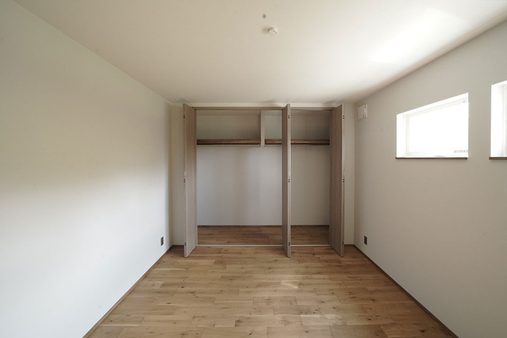 床は無垢のオーク材、壁はエスタコウォールを採用しています。