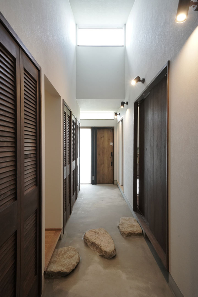 プライベート空間とLDKをつなぐ通り土間にはお施主様セレクトの飛び石。