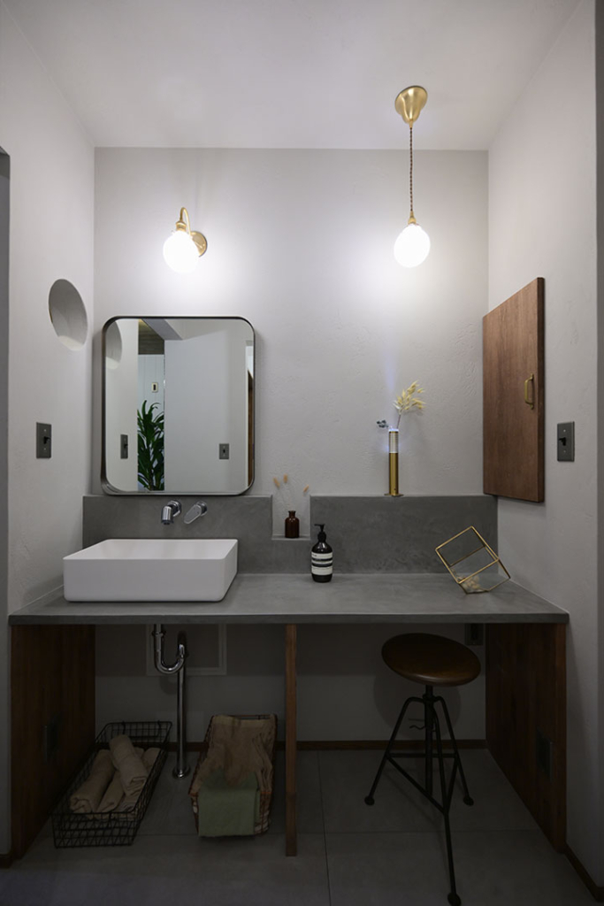 洗面化粧台ハイバックカウンターは、ホロスホームの工房スタッフによるモールテックス一体成型で