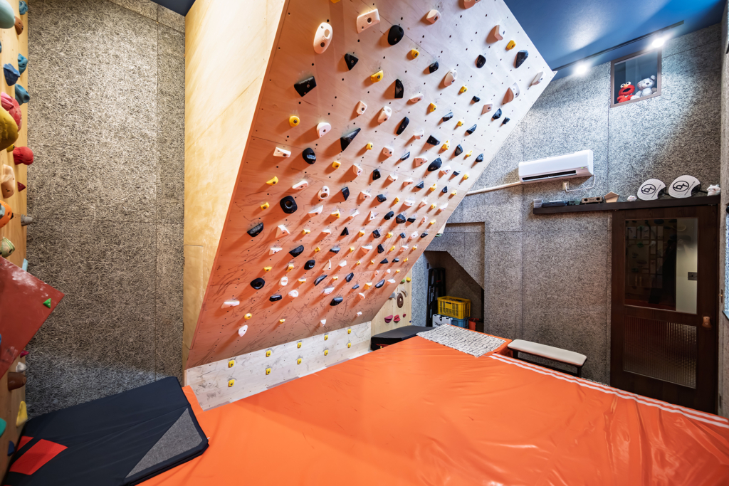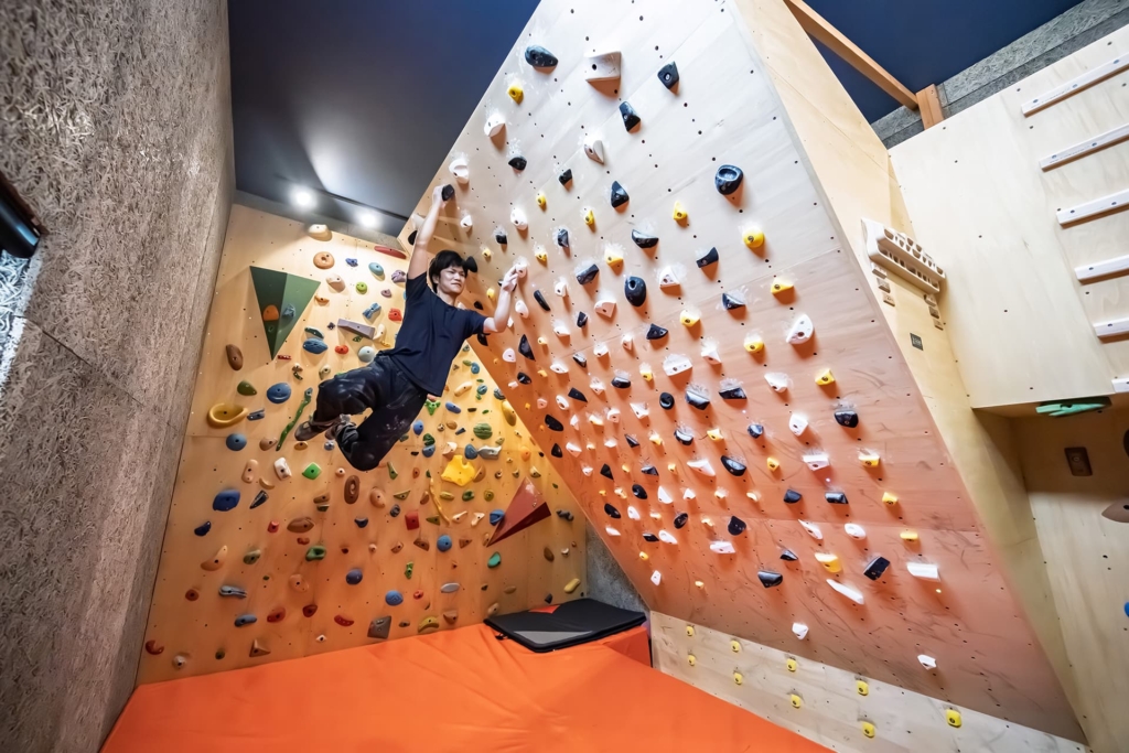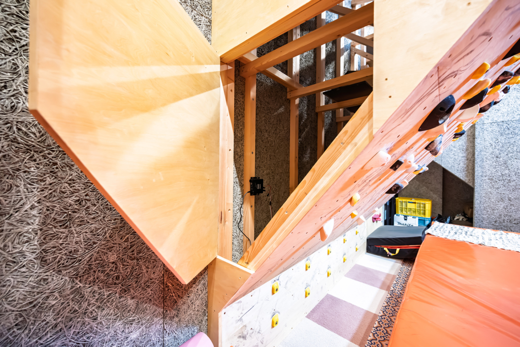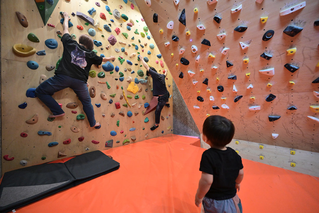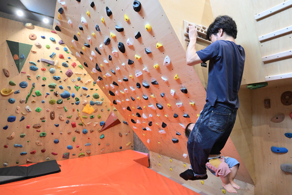 ホールにはボルダリングルーム観覧スペースも設けました。