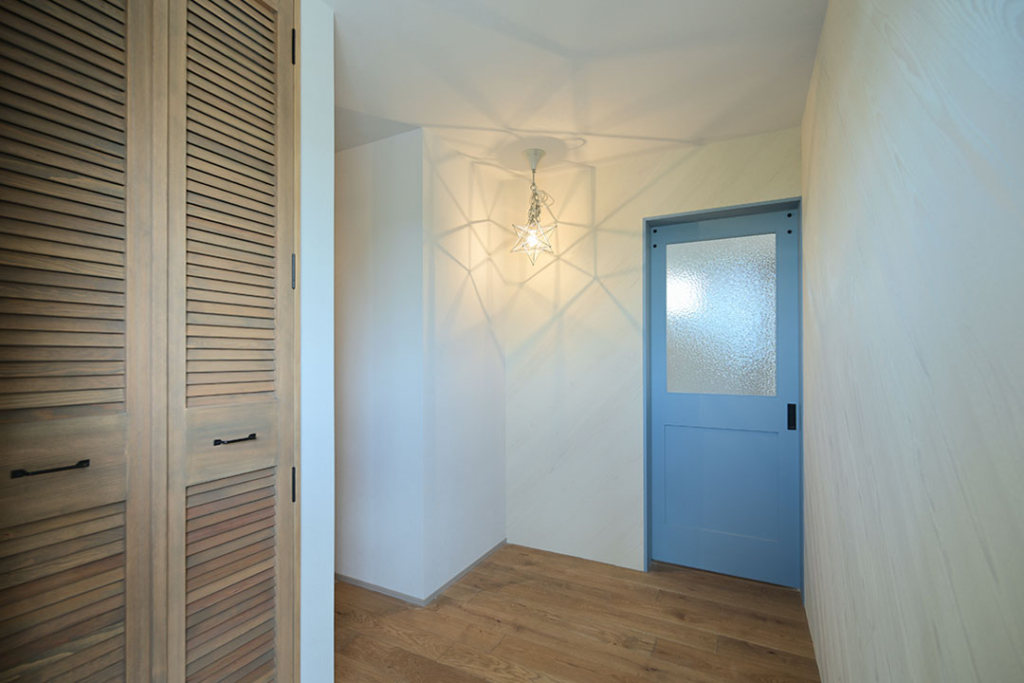 玄関ホールには、影の出方が面白いペンダントライトを採用。