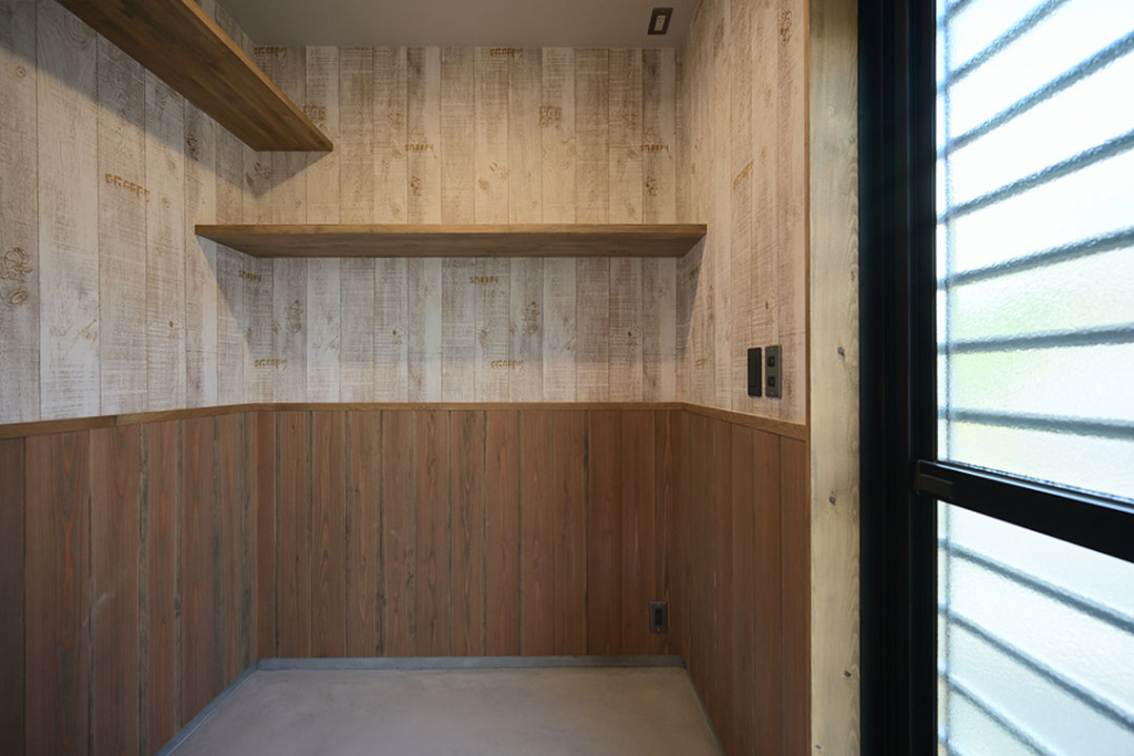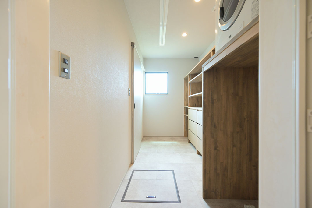 ランドリールームには造作の収納を設置。