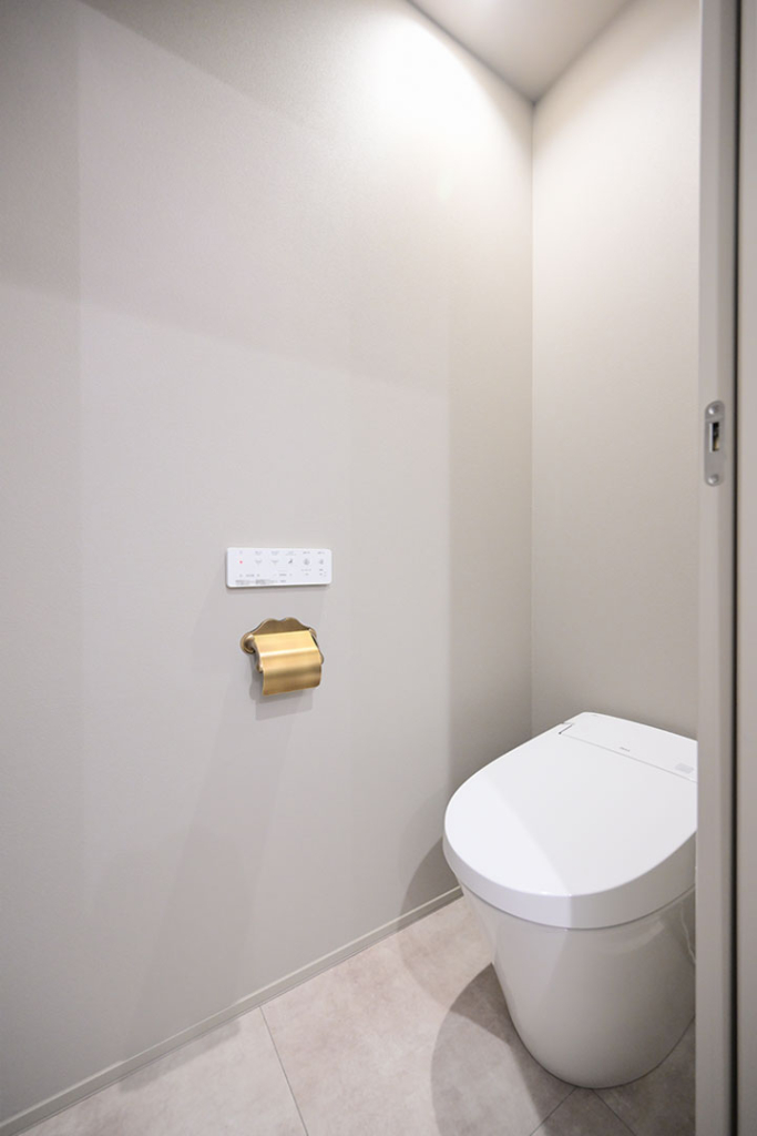 ペーパーホルダー、タオル掛け、手洗いボウルと水栓もすべてお施主様支給。