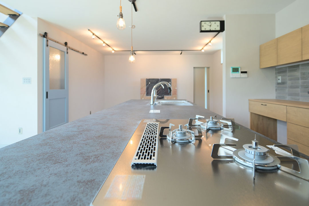 アイランドキッチンでカウンターもあるので、椅子を並べて食事ができます。