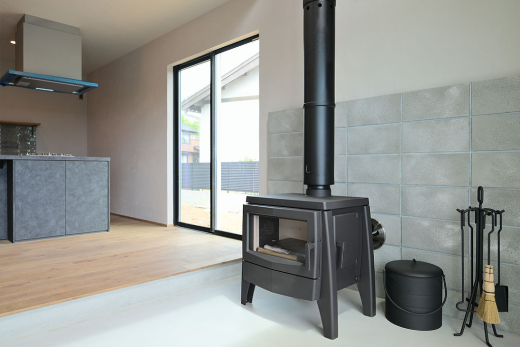 土間スペースには薪ストーブを設置。